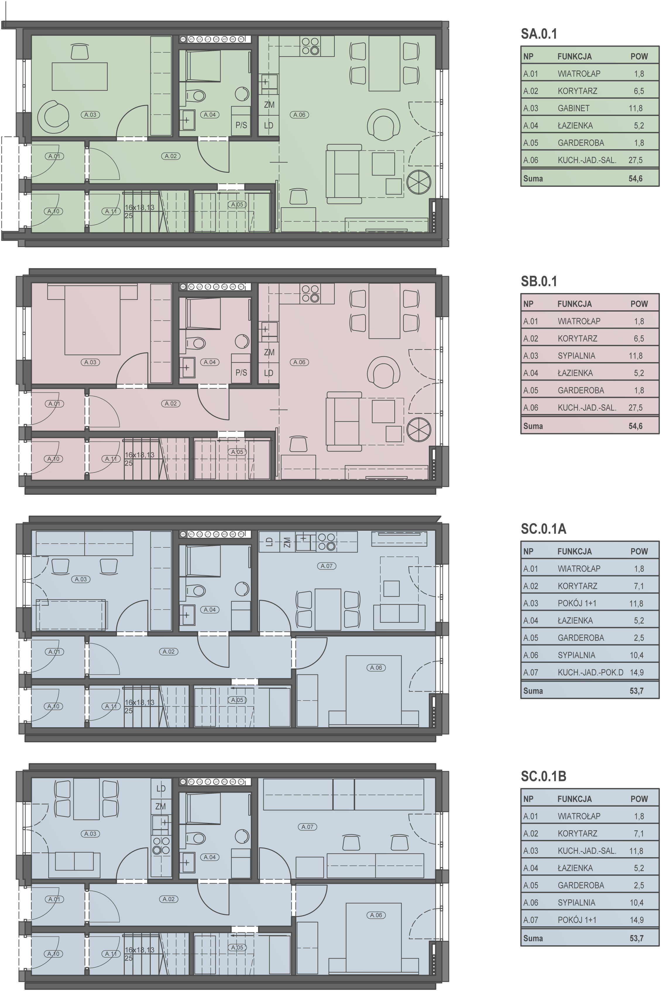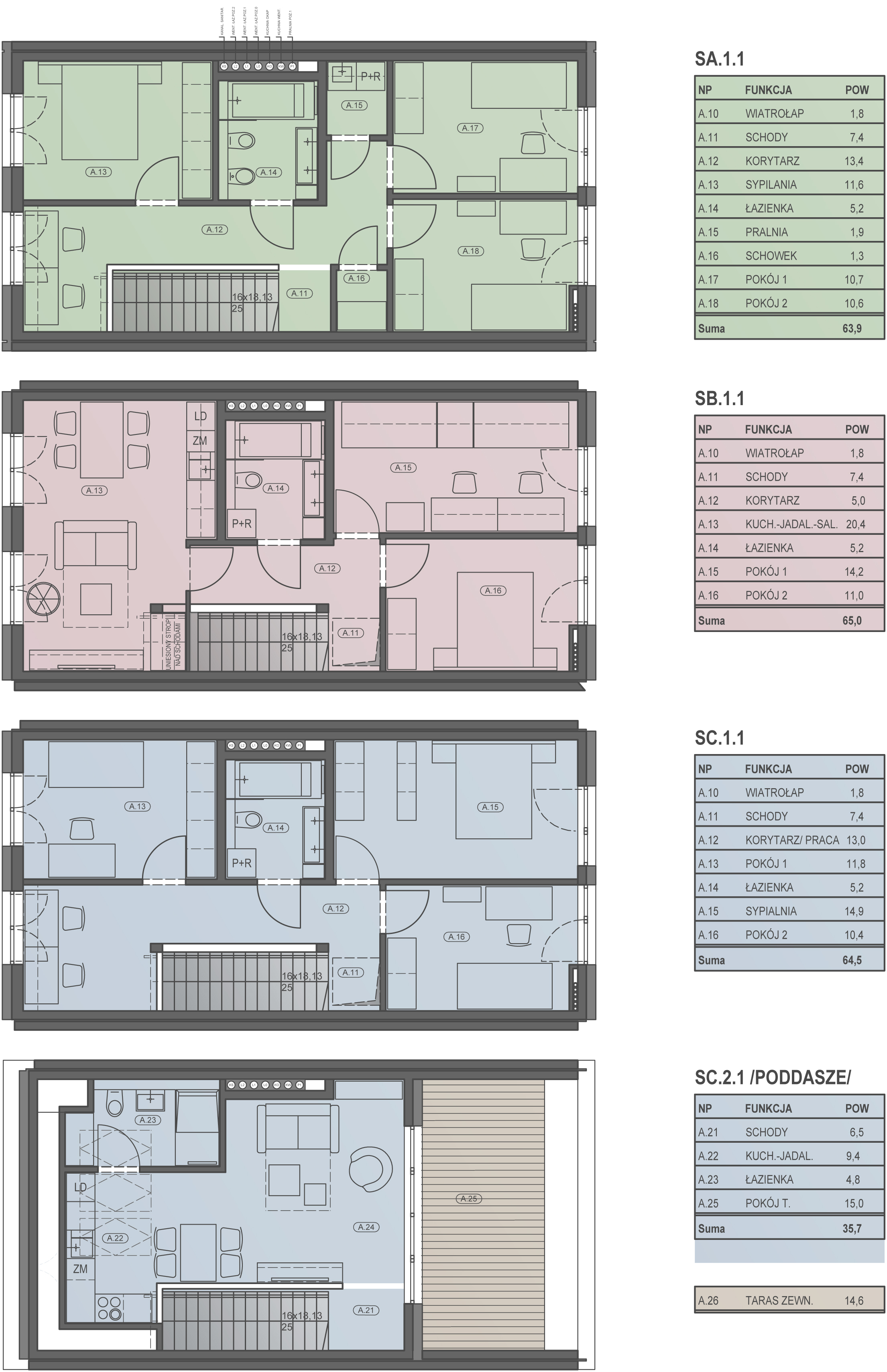 z ogródkami lub tarasami dachowymi. Indywidualne warianty aranżacji wnętrz. Możliwość